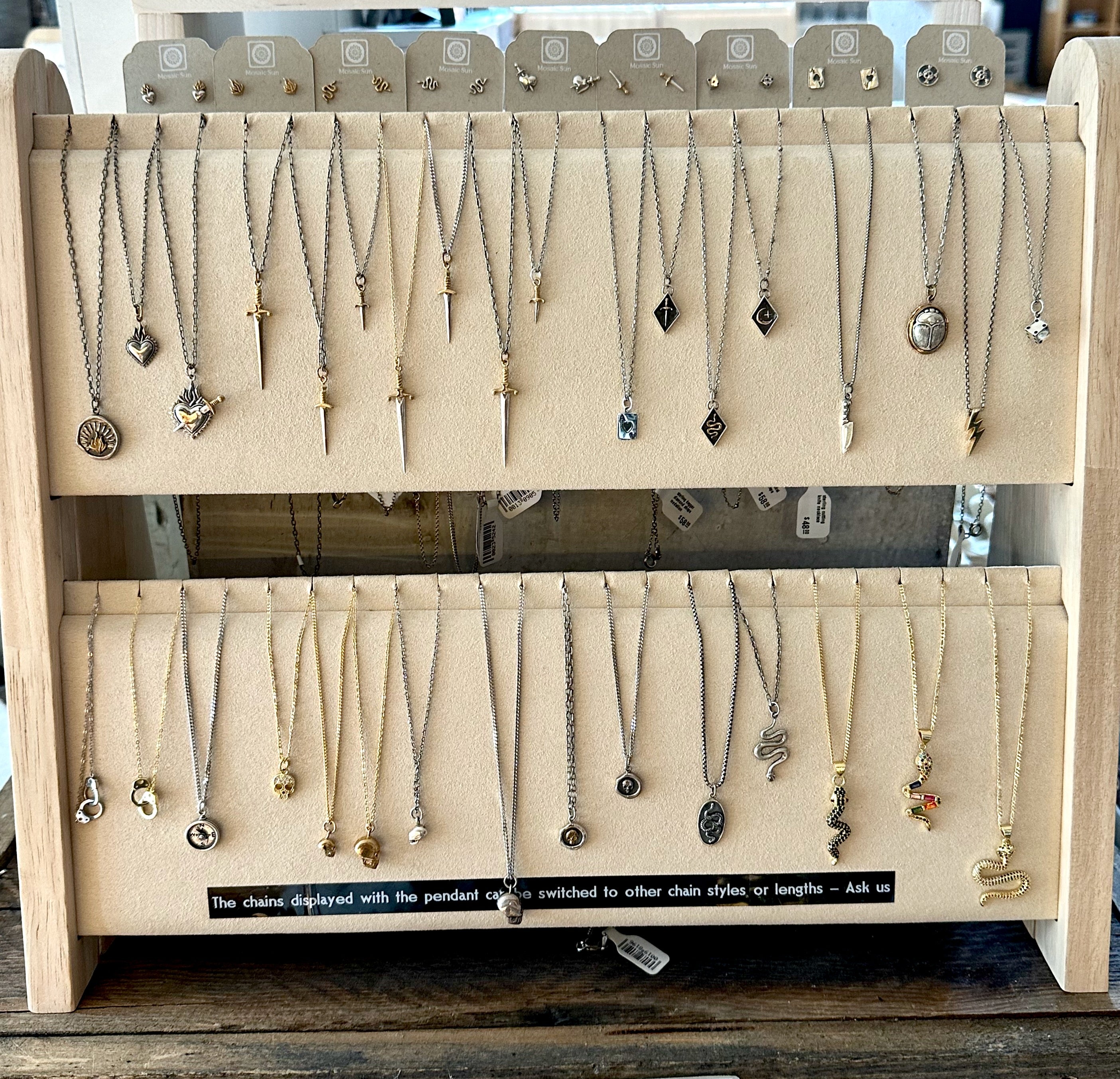 This necklace is exactly what I was looking for. I wanted a mixed metal, artisan-looking necklace with a 20 inch chain. The sun design is cool. Customer service is excellent. I have bought several pieces from Mosaic Sun because of its original designs.