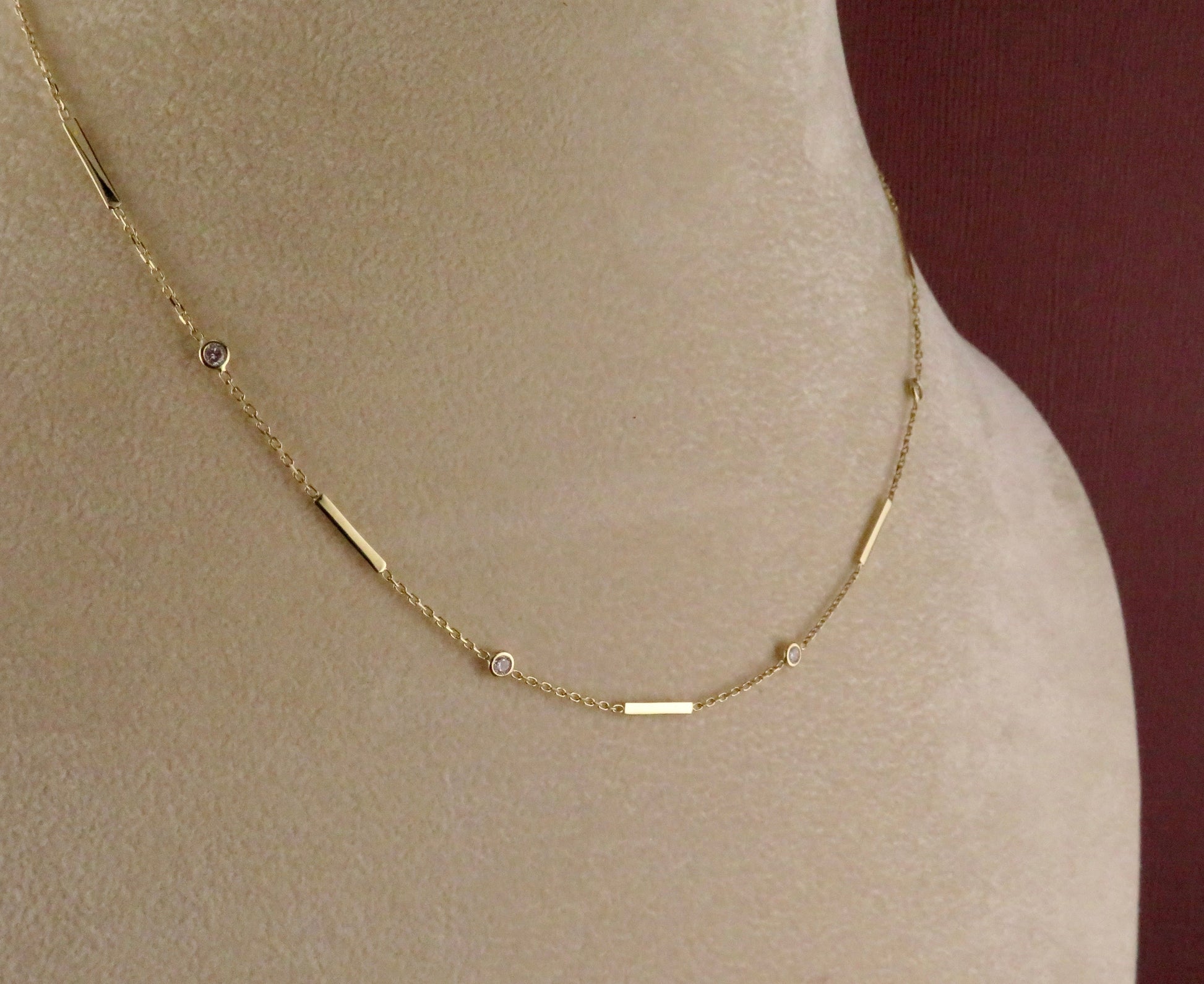 14k Solid Gold Bars/Diamonds Necklace 18"