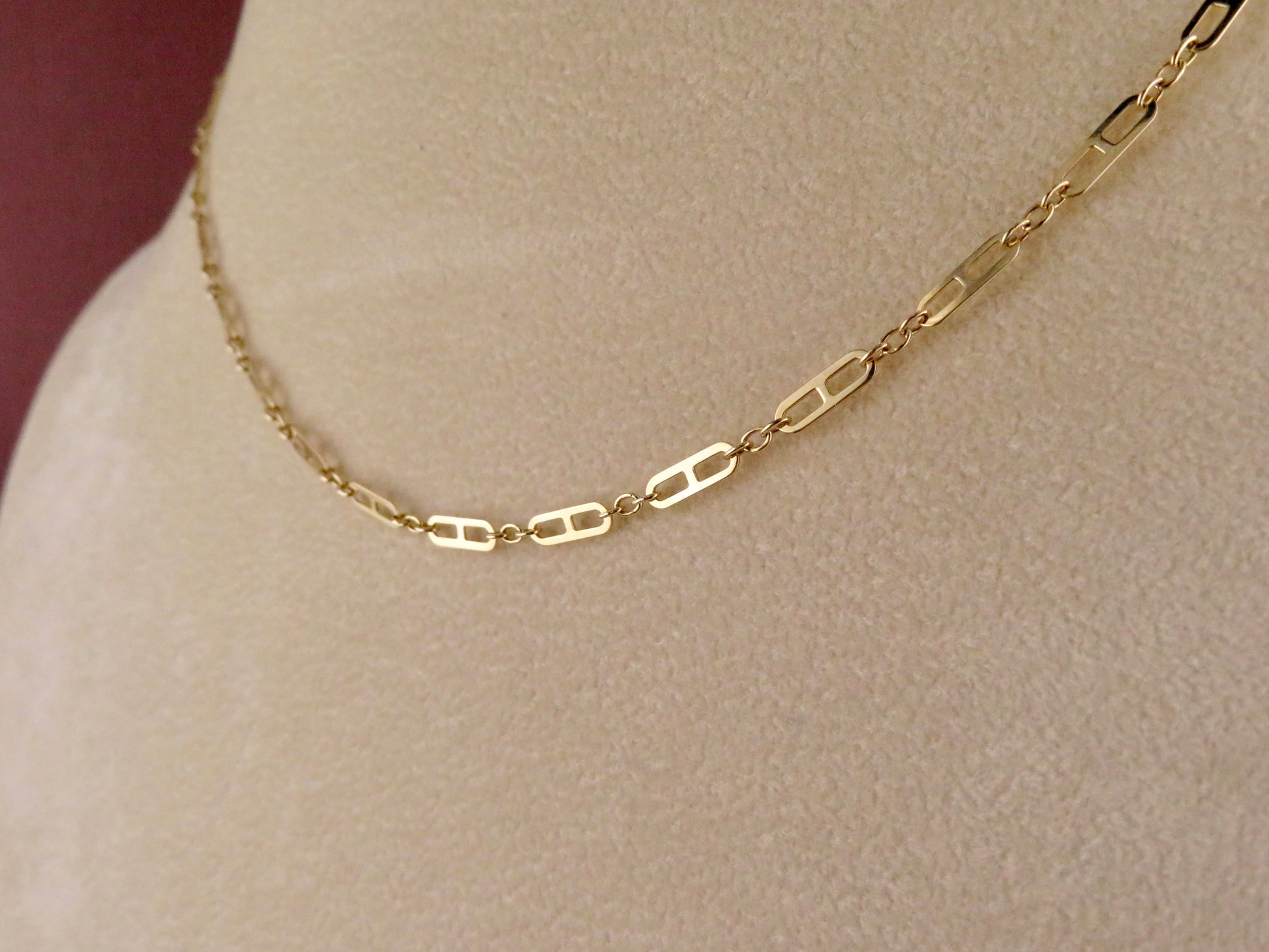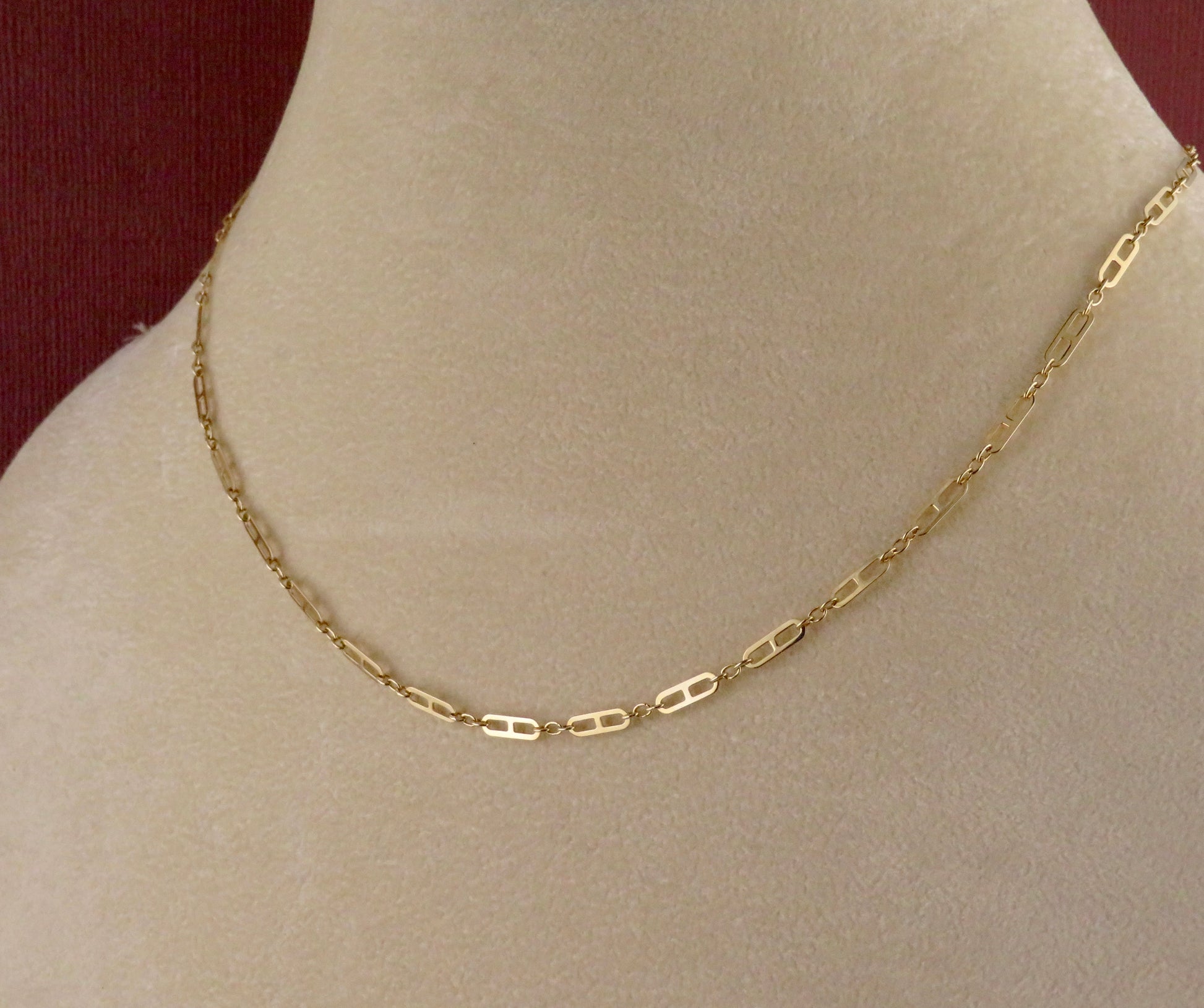 14k Solid Gold Delicate Links Necklace (16-17" Adj.)