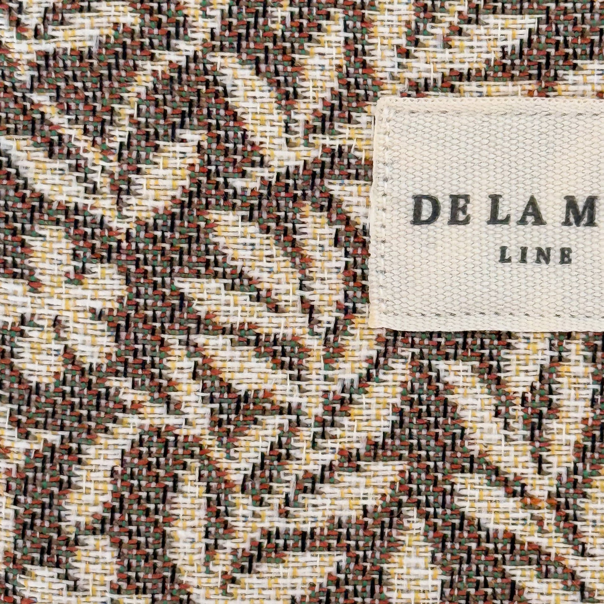 Eyewear case with zipper closure on top and a small beige cord handle on the side. Made from thick jacquard fabric with a floral pattern in cream on a taupe background. Each piece may vary slightly depending on where the fabric was cut. Lined with thick gray fabric on the inside. Hand wash cold and do not tumble dry. Perfect for keeping your glasses safe. It has ample capacity.