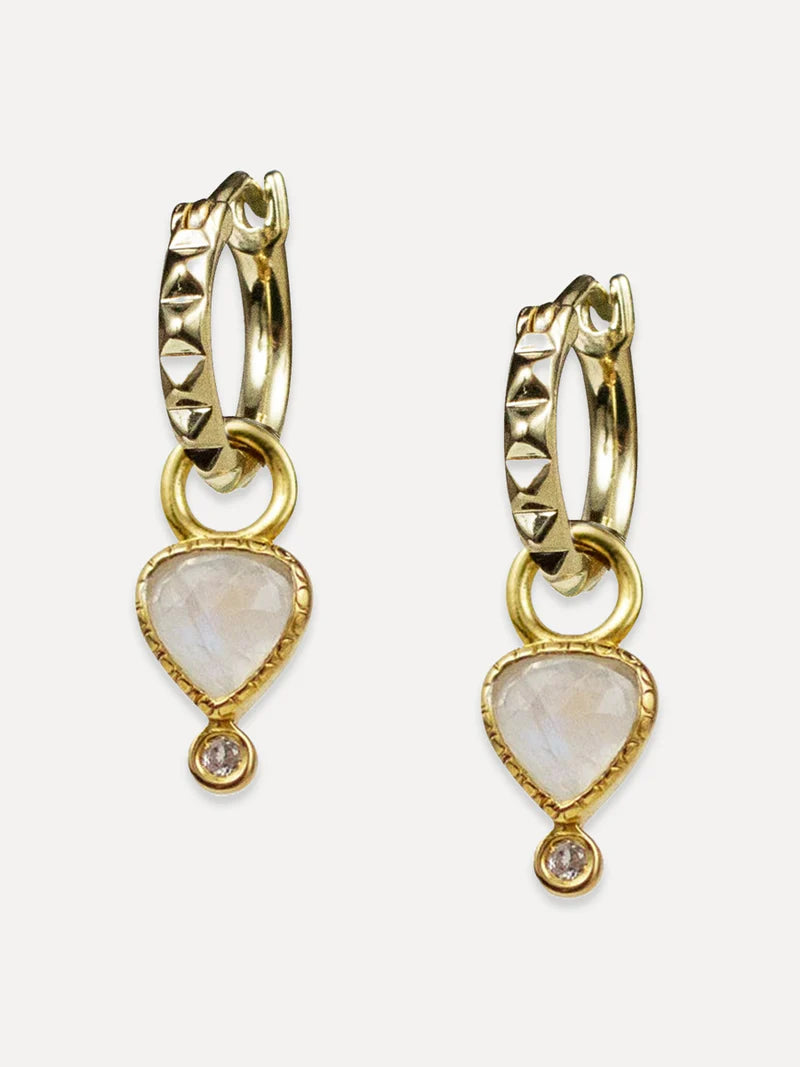 Your new favorite hoops are an opulent pair. A beaded gold vermeil hoop plays host to a faceted drop gemstone edged in similarly textured vermeil, rendering any other jewelry wholly unnecessary. This two-in-one piece can be worn with or without the charm.