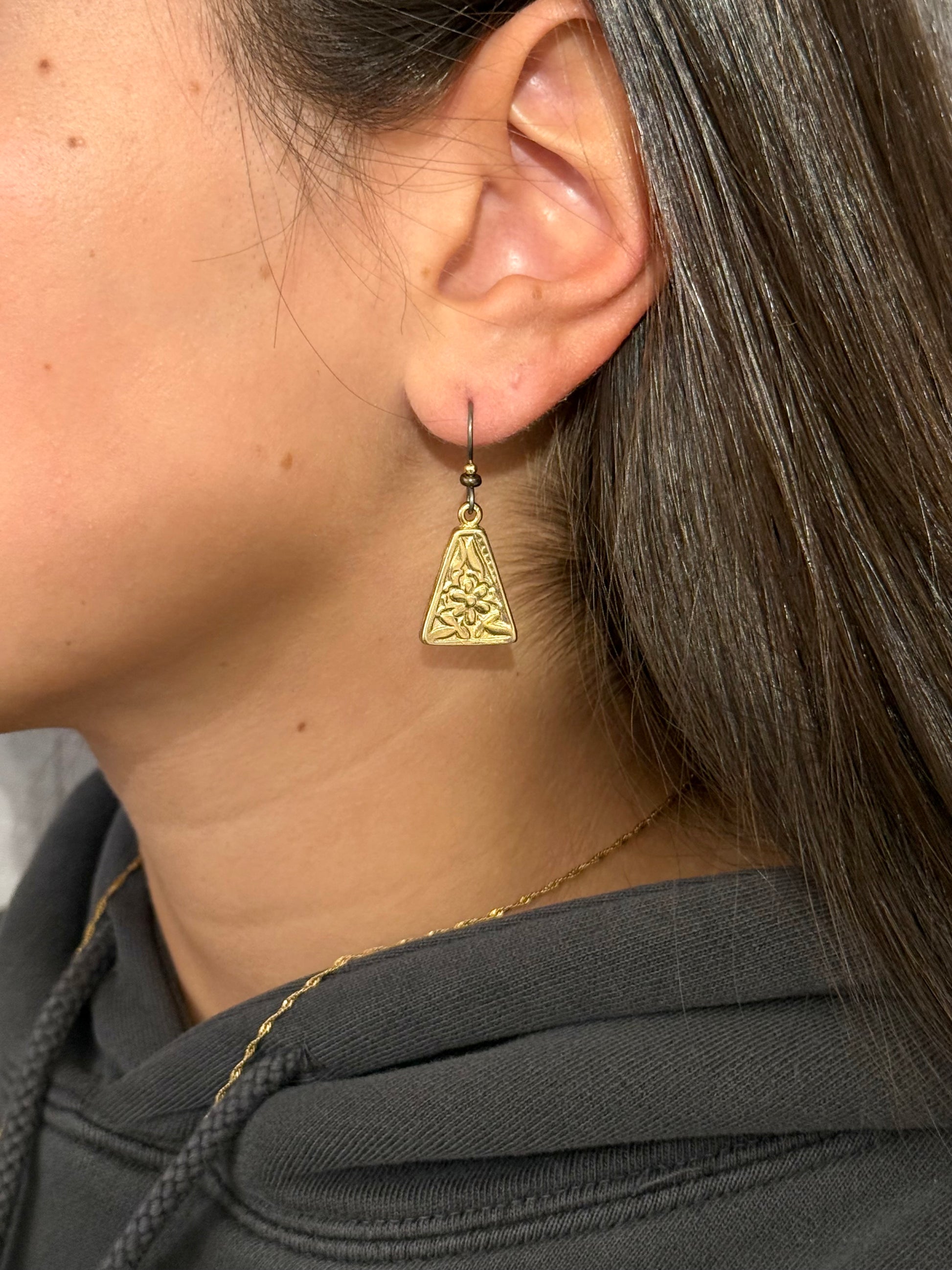 Unique bronze triangular pendants dangle from sterling/niobium ear wires