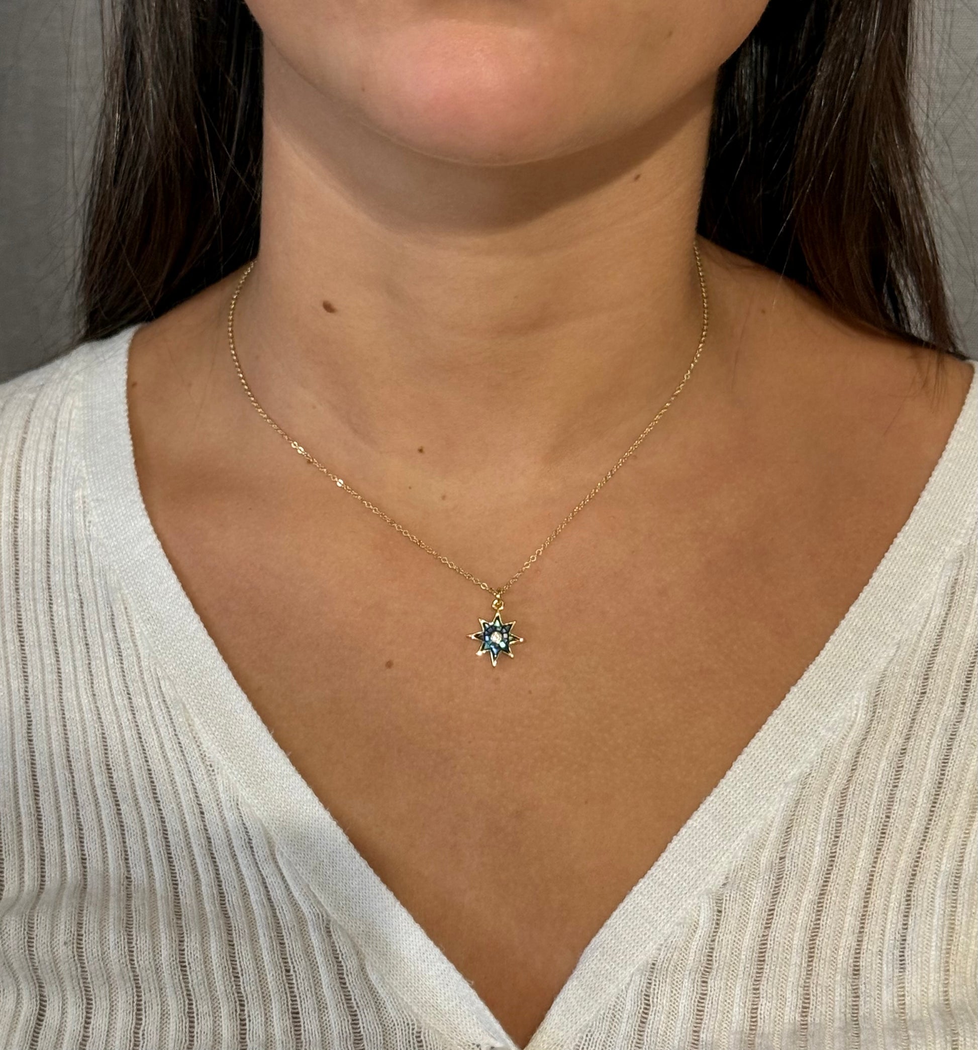 Gold filled mosaic pearl star with a cz center on a gold filled chain