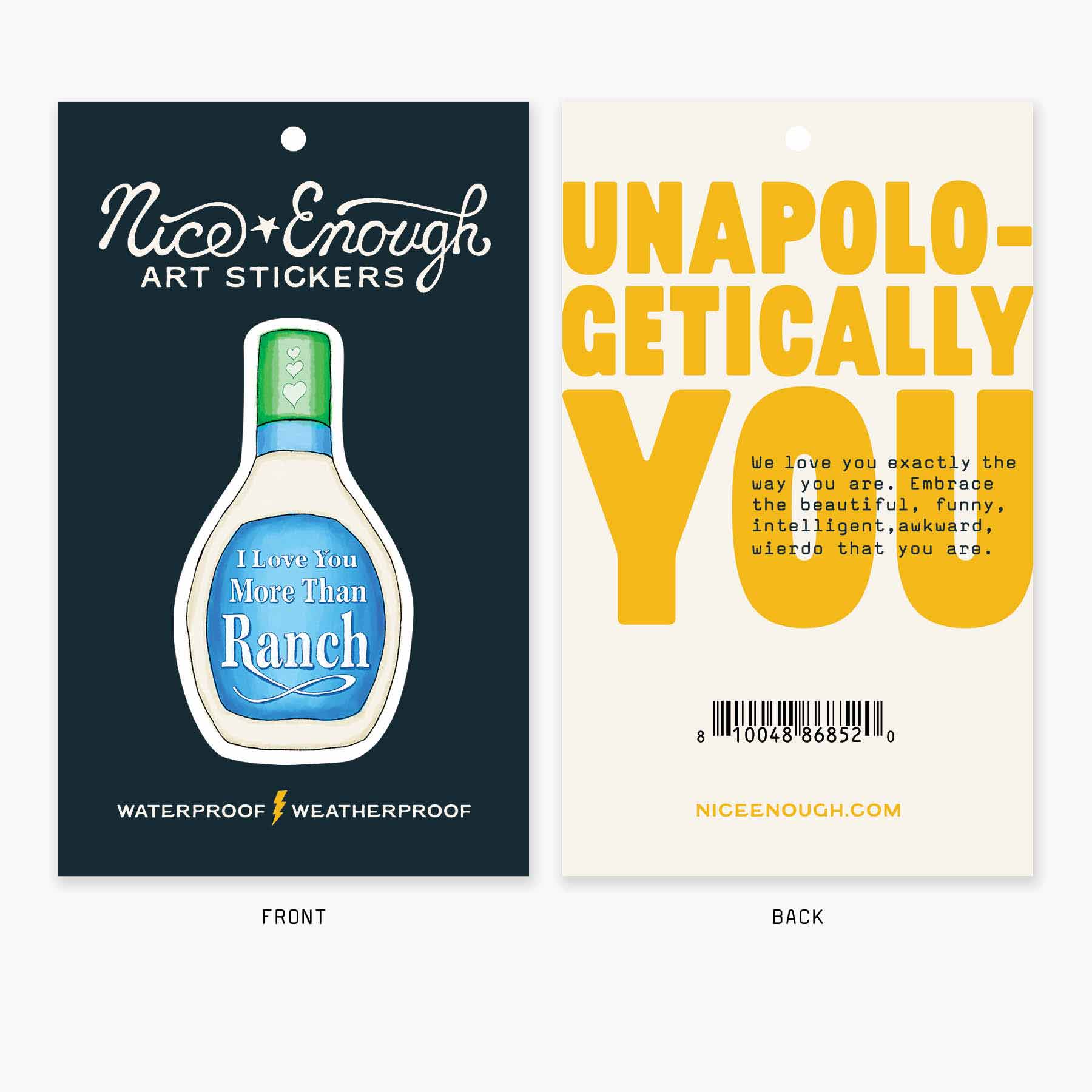 Our Ranch 3" Art Sticker, from Nice Enough Stickers, brings a touch of art to your everyday items. This sticker, part of our Phone & Laptop Stickers collection, is crafted in English and comes with a special waterproof feature. Made from top-quality, weatherproof, and dishwasher safe materials, it's designed to add a personal touch to your laptop, phone, or any surface you choose.